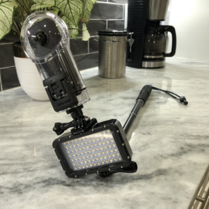 ScubaVirtual 360 videos are created using the Insta360 One X adventure camera and is attached to an underwater light with selfie stick. Below is a list of gear we used: